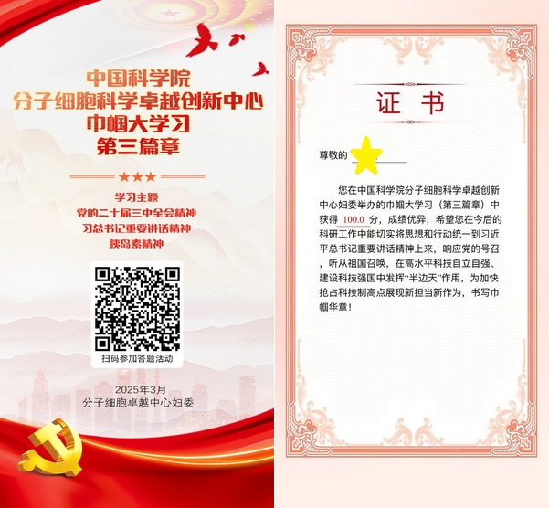 婦女節(jié)當周,中心舉辦“巾幗大學習”活動,組織中心全體女同胞深入學習黨的二十屆三中全會精神、習總書記重要講話精神和胰島素精神內(nèi)涵外延,思考新時代女性科技工作者的使命職責,以線上答題的形式檢驗學習成果,引領廣大女職工進一步堅定聽黨話、跟黨走的信念信心,潛心致研、巾幗逐夢、彰顯擔當。600余名女職工及學生參加學習并取得學習證書。