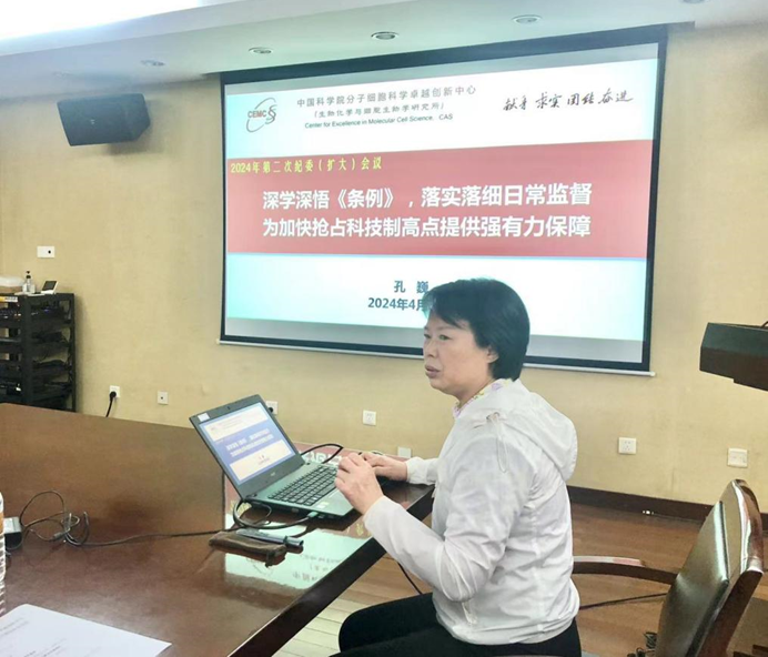 在全黨開展黨紀(jì)學(xué)習(xí)教育,是加強(qiáng)黨的紀(jì)律建設(shè)、推動(dòng)全面從嚴(yán)治黨向縱深發(fā)展的重要舉措。為推動(dòng)中心紀(jì)檢干部在黨紀(jì)學(xué)習(xí)教育中學(xué)在先、走在前,帶頭做到學(xué)紀(jì)、知紀(jì)、明紀(jì)、守紀(jì),進(jìn)一步履行好監(jiān)督專責(zé),維護(hù)好風(fēng)清氣正的創(chuàng)新生態(tài),4月30日下午,分子細(xì)胞卓越中心舉行紀(jì)檢干部黨紀(jì)學(xué)習(xí)教育集體學(xué)習(xí)培訓(xùn)。中心紀(jì)委委員、黨支部紀(jì)檢委員、監(jiān)督審計(jì)處工作人員參加了會(huì)議。會(huì)議由監(jiān)督審計(jì)處處長(zhǎng)許明敏主持。