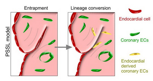 冠狀動脈疾病引起心肌梗死和心衰,是人類因疾病死亡的首要原因。促進(jìn)冠狀血管新生對治療心肌梗死具有非常重要的意義。然而,心血管損傷修復(fù)的細(xì)胞來源和分子機(jī)制尚未全面了解。發(fā)生急性心梗后,心肌細(xì)胞和血管內(nèi)皮細(xì)胞大量死亡,僅少量心肌細(xì)胞分裂增殖。因此,如何提高心臟供血已經(jīng)成為該領(lǐng)域的研究熱點(diǎn)。前期相關(guān)研究發(fā)現(xiàn)出生后心臟具有重新生成冠狀動脈的能力,心內(nèi)膜是大部分冠狀動脈的起源。而成體心臟損傷修復(fù)中心內(nèi)膜是否能夠轉(zhuǎn)分化成血管內(nèi)皮細(xì)胞從而提高心臟損傷修復(fù)能力尚不清楚。