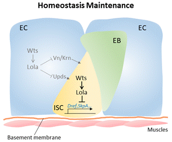 “Lola regulates Drosophila adult midgut homeostasis via non-canonical Hippo signaling”。該研究揭示了轉(zhuǎn)錄因子Lola作為非經(jīng)典Hippo信號通路下游的響應(yīng)因子調(diào)控果蠅腸干細胞(Intestine Stem Cell, ISC)的增殖及腸穩(wěn)態(tài)的維持。