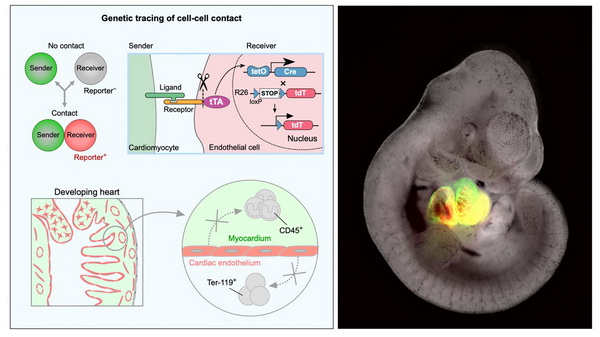 6月22日,國際學(xué)術(shù)期刊Developmental Cell在線發(fā)表了國科大杭州高等研究院生命與健康學(xué)院/中國科學(xué)院分子細(xì)胞科學(xué)卓越創(chuàng)新中心周斌研究組合作研究成果“Intercellular Genetic Tracing of Cardiac Endothelium in the Developing Heart”。該研究結(jié)合合成生物學(xué)與體內(nèi)遺傳學(xué)技術(shù),創(chuàng)建了研究心臟發(fā)育的鄰近細(xì)胞譜系示蹤新工具。利用該技術(shù),研究人員重新闡明心臟早期發(fā)育過程中心內(nèi)膜及冠狀動脈發(fā)育譜系建立,并發(fā)現(xiàn)心臟內(nèi)皮細(xì)胞在正常發(fā)育過程中并不具有造血功能,而是形成冠狀血管內(nèi)皮細(xì)胞。該工作為人們更清楚地了解心臟早期發(fā)育、心臟免疫細(xì)胞起源及臨床心臟損傷修復(fù)提供研究基礎(chǔ),也為體內(nèi)鄰近細(xì)胞研究提供重要技術(shù)指導(dǎo)。