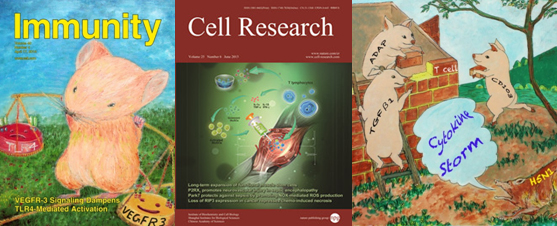 左圖Immunity, 2014, Cover Story; 中圖:Cell Research, 2015, Cover Story;右圖:PLoS Pathogens, 2015