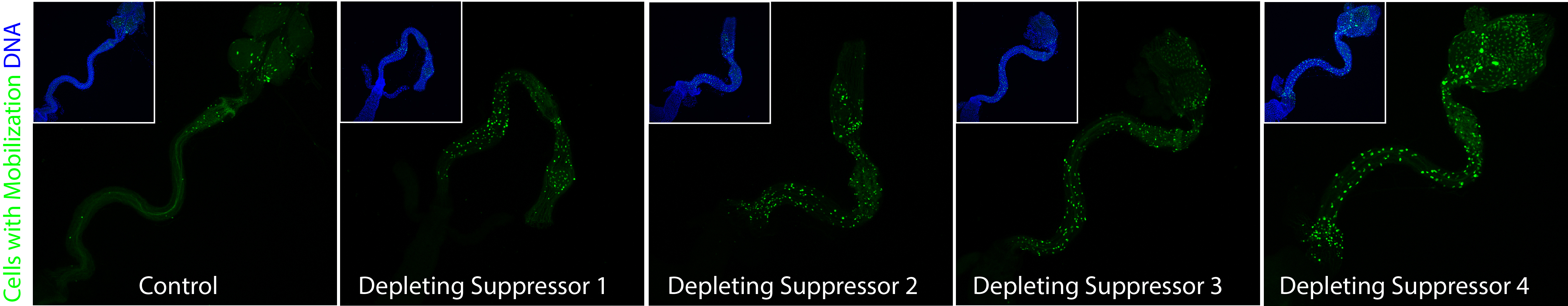 盡管逆轉(zhuǎn)座子在體細(xì)胞中的激活和轉(zhuǎn)座與諸如直腸癌等多種人類疾病息息相關(guān),但是到至今為止仍然缺少一個好的體細(xì)胞模型去研究逆轉(zhuǎn)座子的轉(zhuǎn)座和調(diào)控。通過跟蹤眾多逆轉(zhuǎn)座子在果蠅體細(xì)胞組織發(fā)育過程中的轉(zhuǎn)座事件,我們鑒定出果蠅的直腸組織是一個非常好的研究逆轉(zhuǎn)座子調(diào)控和轉(zhuǎn)座的模型。我們發(fā)現(xiàn)在野生型成年果蠅的整條直腸中轉(zhuǎn)座事件發(fā)生的幾率非常的低(如下圖)。這就表明果蠅進(jìn)化出了非常精細(xì)的分子機(jī)制去保護(hù)直腸免受逆轉(zhuǎn)座子轉(zhuǎn)座而帶來的損傷。通過初步RNAi遺傳篩選實驗,我們鑒定出了4種蛋白因子可以有效的抑制逆轉(zhuǎn)座子在直腸中的轉(zhuǎn)座事件(如下圖)。接下來我將研究這些蛋白因子調(diào)控逆轉(zhuǎn)座子轉(zhuǎn)座的具體機(jī)制,同時我也會擴(kuò)大篩選體系直至覆蓋整個基因組,這樣可以全面的鑒定出逆轉(zhuǎn)座子在體細(xì)胞中被沉默的潛在通路。我們的工作不僅僅可以闡明基本的生物學(xué)現(xiàn)象,而且也可以為逆轉(zhuǎn)座子的激活是如何導(dǎo)致疾病和衰老的提供實驗依據(jù)和科學(xué)線索。