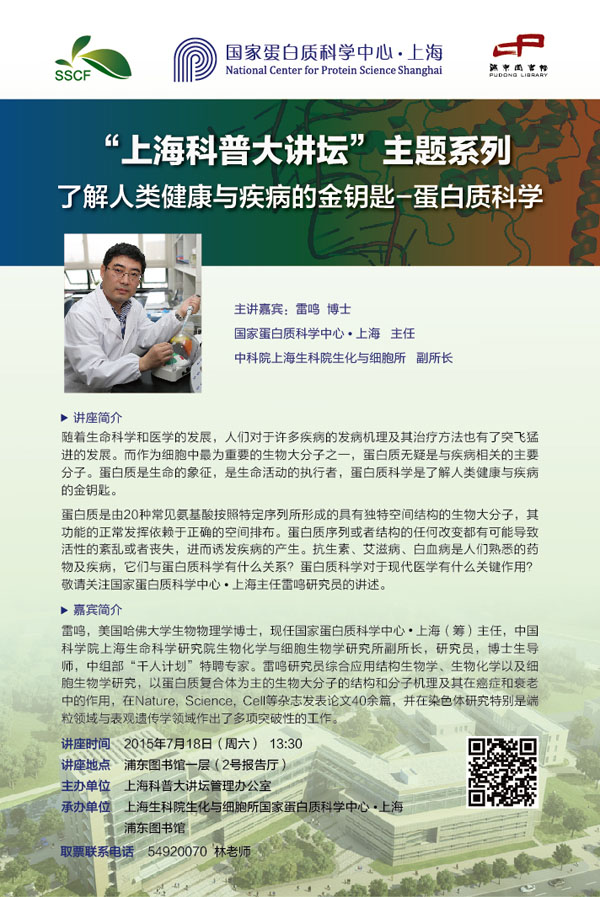 “上??破沾笾v壇”主題系列--了解人類健康與疾病的金鑰匙-蛋白質(zhì)科學(xué)