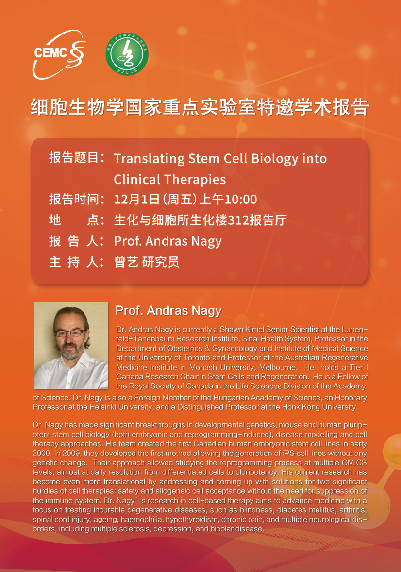 Prof. Andras Nagy, University of Toronto: Translating Stem Cell Biology into Clinical Therapies