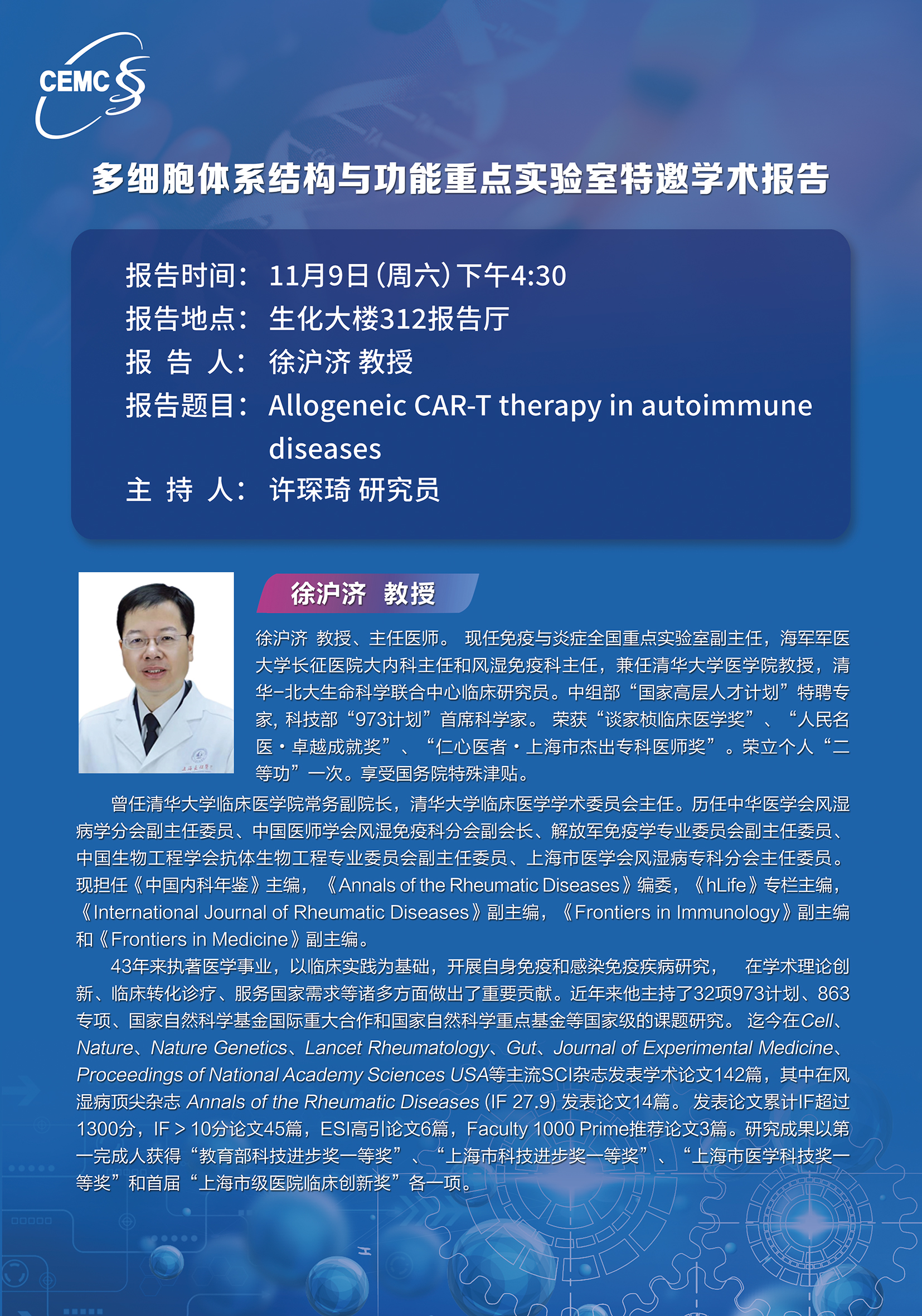 海軍軍醫(yī)大學長征醫(yī)院?徐滬濟?教授:Allogeneic CAR-T therapyin autoimmunediseases