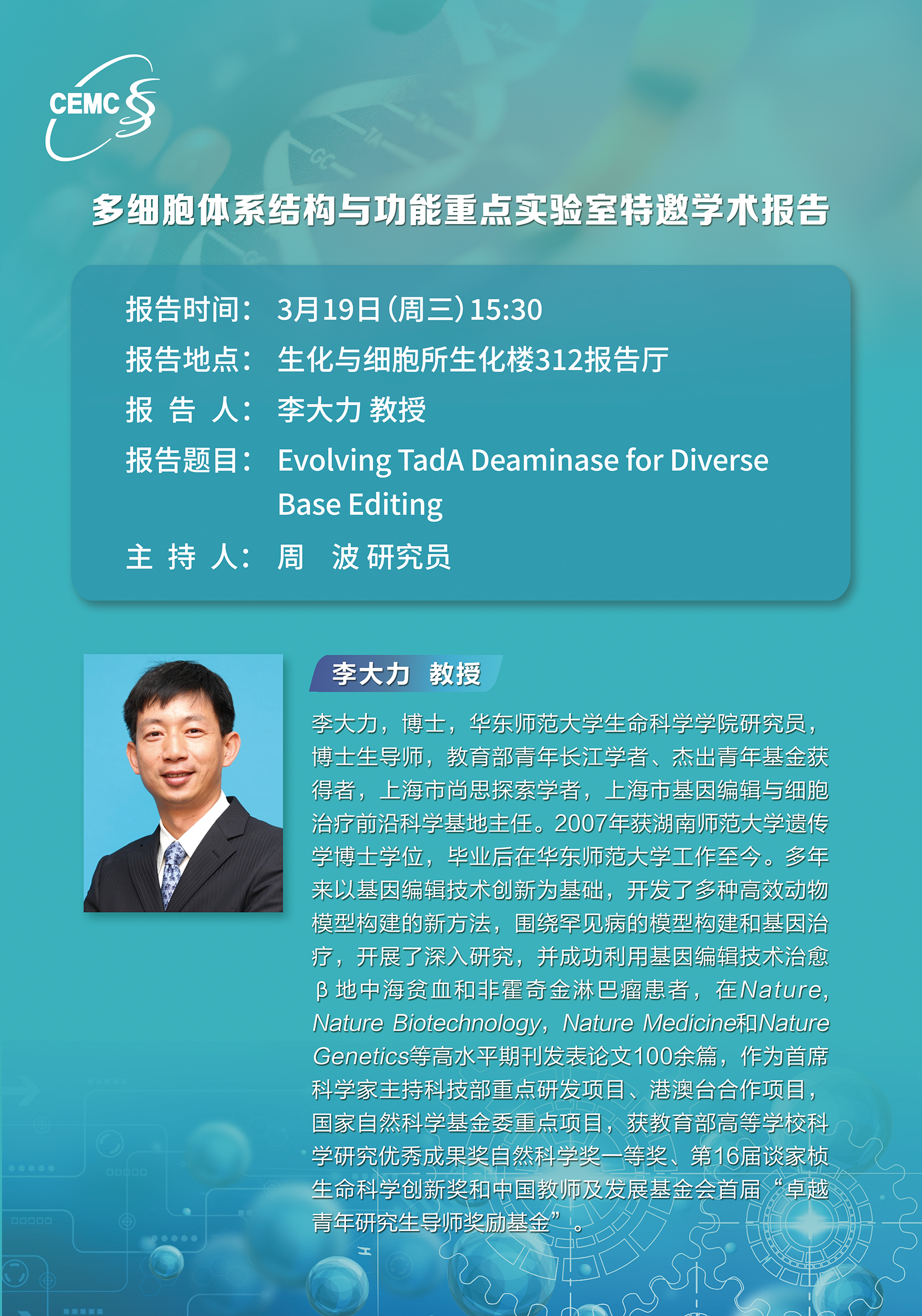 華東師范大學?李大力?教授:Evolving TadA Deaminase for DiverseBase Editing
