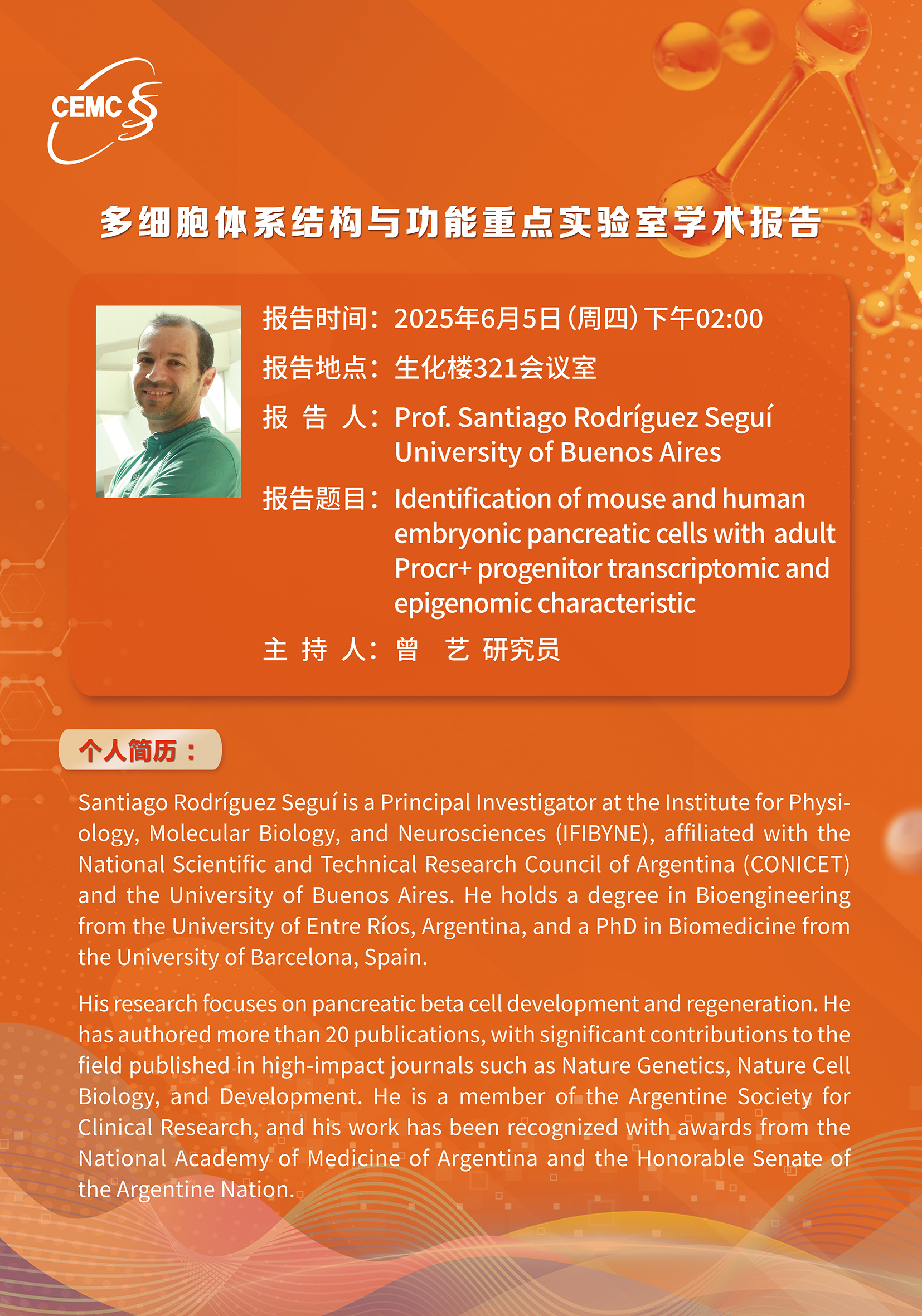 Prof. Santiago Rodriguez Segui,?University of Buenos Aires:?Identification of?mouse and human?embryonic pancreatic cells with adult?Procr+ progenitor transcriptomic and?epigenomic characteristic.