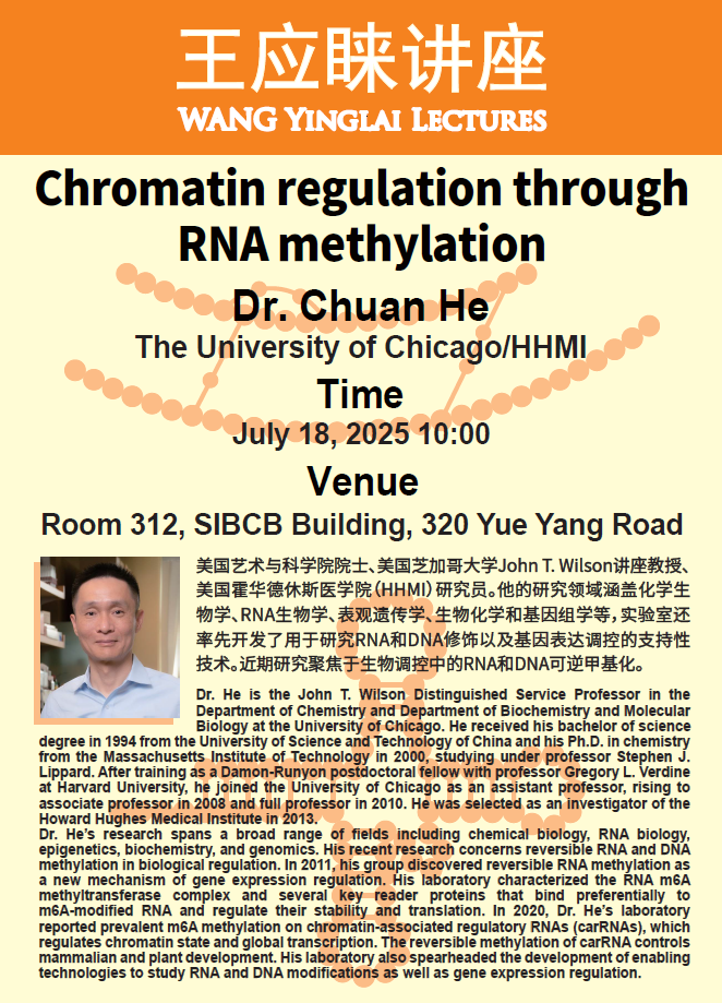 Dr.Chuan HE, The University of Chicago/HHMI, Chromatin regulation through RNA methylation