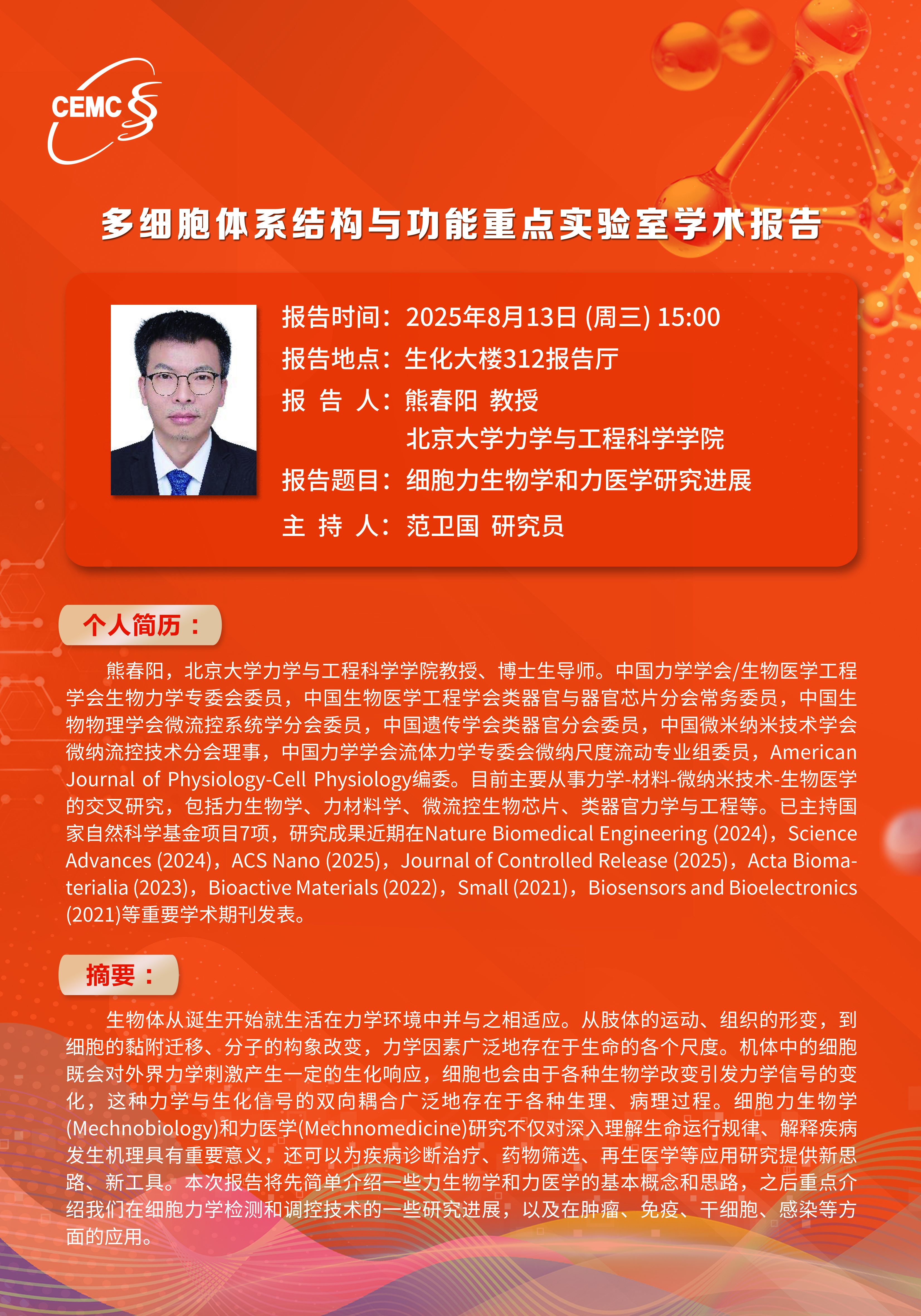 北京大學(xué)?熊春陽?教授:細(xì)胞力生物學(xué)和力醫(yī)學(xué)研究進(jìn)展