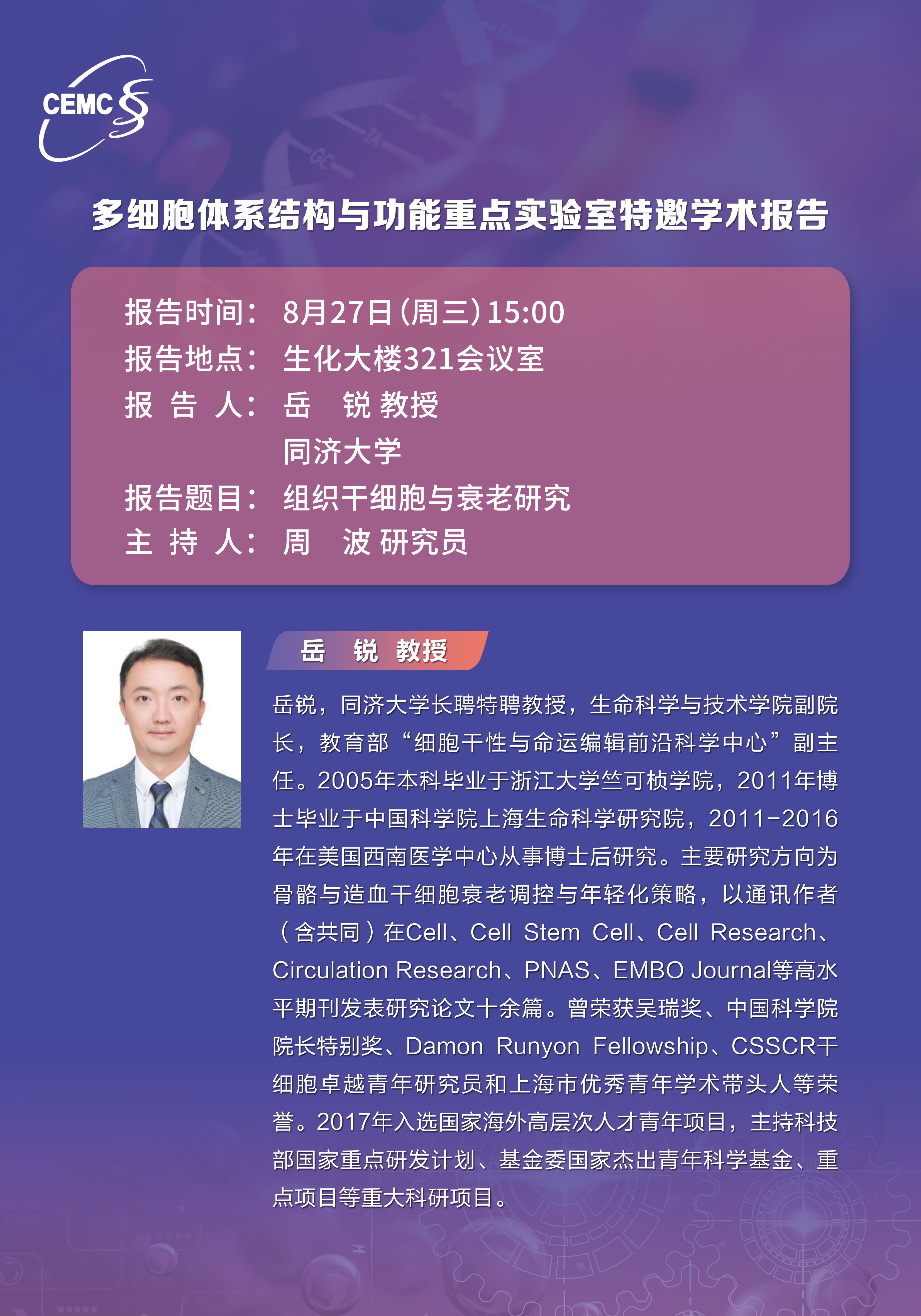同濟(jì)大學(xué)?岳銳?教授:組織干細(xì)胞與衰老研究