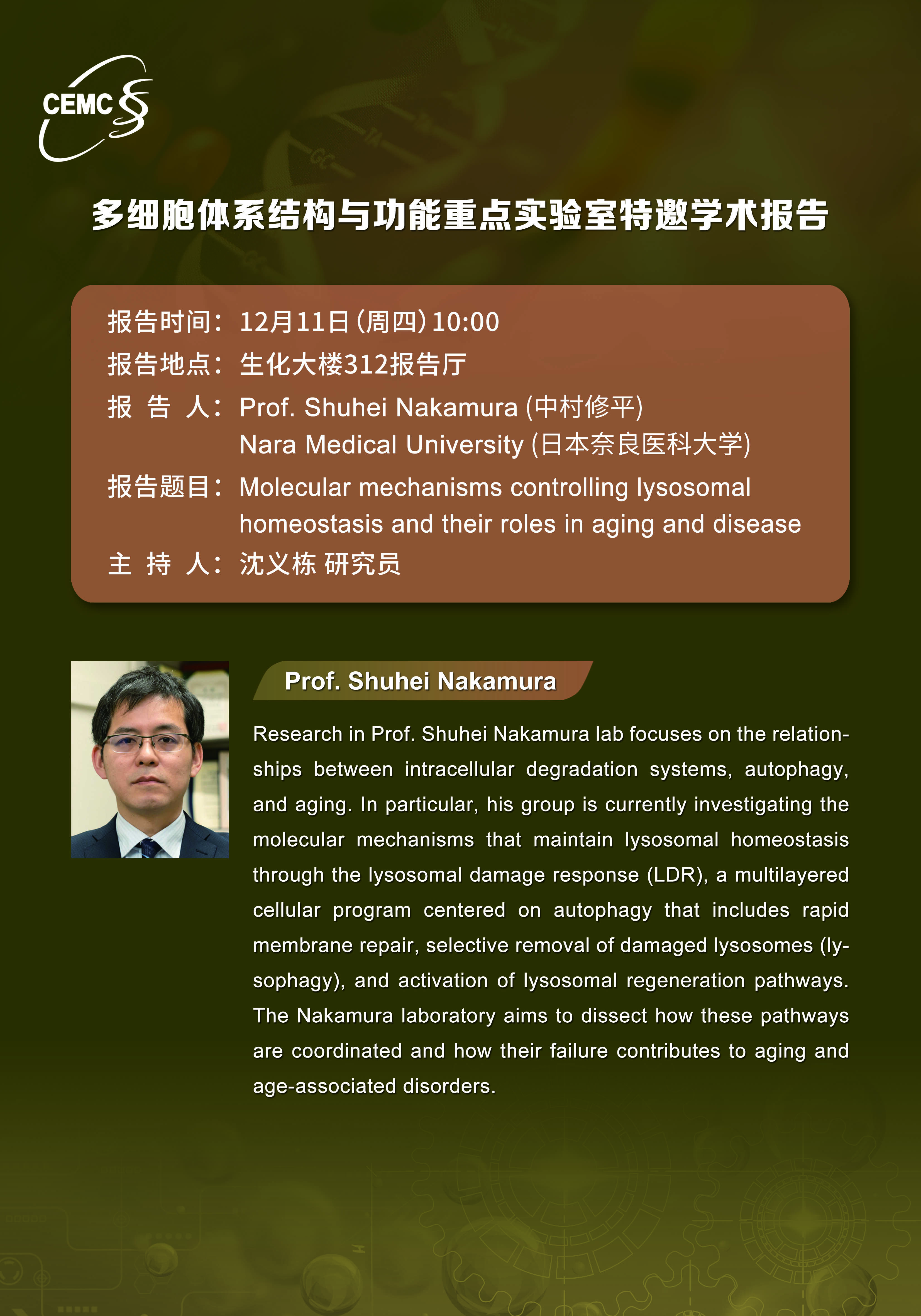 日本奈良醫(yī)科大學(xué)?中村修平?教授:Molecular mechanisms controlling lysosomal?homeostasis and their roles in aging and disease