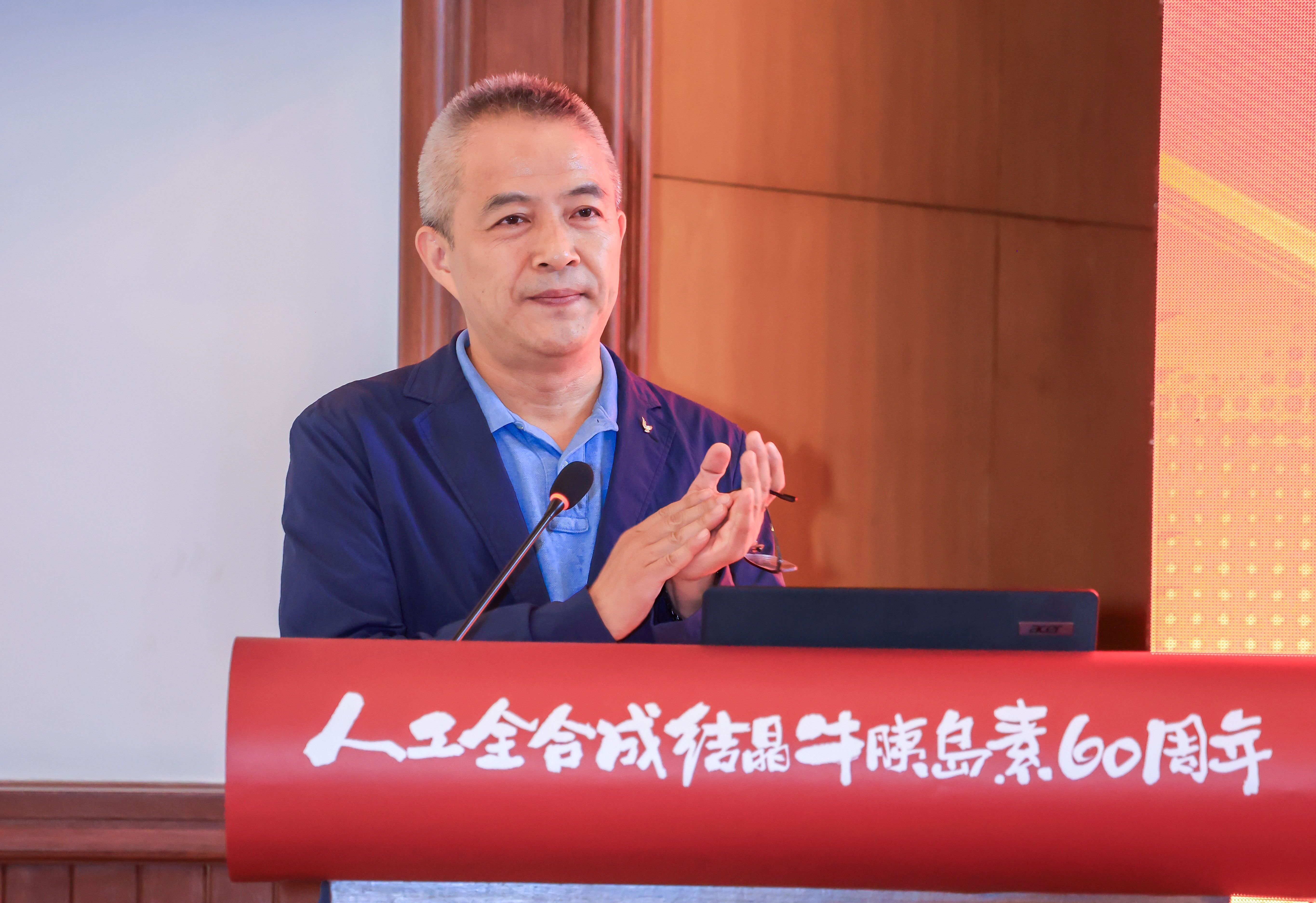 分子細(xì)胞卓越中心主任、黨委負(fù)責(zé)人劉小龍首先作題為《結(jié)晶映甲子、初心照未來——讓胰島素精神之光照亮新時代科技創(chuàng)新之路》的報告,重溫了六十年前老一輩科學(xué)家攜手攻堅完成人工全合成結(jié)晶牛胰島素的艱辛歷程,詳細(xì)介紹了中心近年來持續(xù)開展胰島素相關(guān)科學(xué)研究,在基礎(chǔ)研究、科技成果轉(zhuǎn)化、學(xué)科交流與合作等方面取得的一系列新進(jìn)展。他表示,科技創(chuàng)新之路任重道遠(yuǎn),胰島素精神的火種六十年間在“320大院”薪火相傳,期待未來與兄弟單位有更多更緊密的合作,在原始創(chuàng)新與關(guān)鍵核心技術(shù)領(lǐng)域?qū)崿F(xiàn)更多“從0到1”的突破。