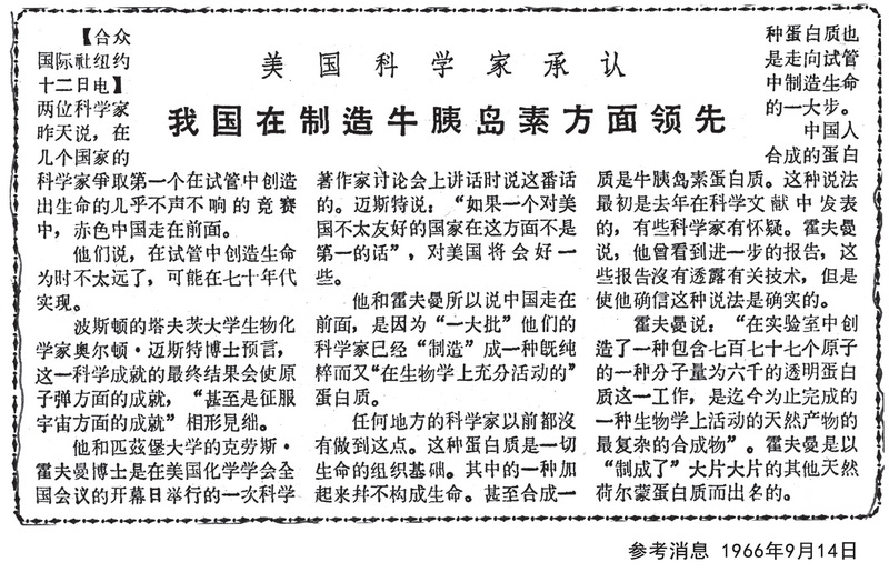 美國科學家承認我國在制造牛胰島素方面領(lǐng)先